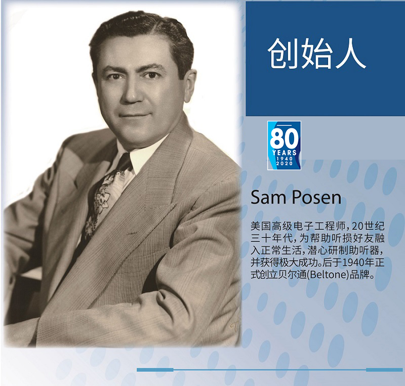 美國(guó)貝爾通(英文名:Beltone)的創(chuàng)始人Sam Posen為了幫助一位聽損朋友,設(shè)計(jì)開發(fā)出首款助聽器,美國(guó)貝爾通因愛而生,走過(guò)80個(gè)年頭,直至現(xiàn)在,仍然譜寫著屬于自己的輝煌篇章。