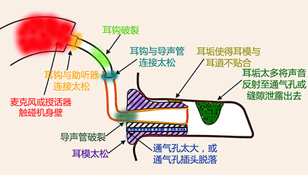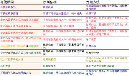 <span style="font-size:16px;"> 嘯叫,一直是引起助聽器使用者不滿的一大原因,也是驗配師在助聽器調試時最為棘手的難題之一。</span></p><p><span style="font-size:16px;"> 通常,嘯叫分內部嘯叫和外部嘯叫。內部嘯叫常由內部零件故障引起,而外部嘯叫則是與助聽器外殼或耳模,助聽器調試等有關。</span></p><p style="text-align: center;"><span style="font-size:16px;"><img src="/upfiles/201810100140556872.jpg" alt="" /><br /></span></p><p><span style="font-size:16px;"> 我們常常說的外部嘯叫是在聲音被麥克風拾取、放大器放大、授話器轉換后,又從各種縫隙(如外殼與耳道的縫隙、通氣孔)中“跑”出來,又“跑”進去,如此反復多次,使得聲音越來越大,產生“吱吱吱”的惱人嘯叫。</span></p><p><span style="font-size:16px;"> 以助聽器的角度來看,shou話器把聲音授給耳朵聽,當用“授”,即授話器。</span></p><p><span style="font-size:16px;"> 接下來將分別針對定制式(ITE/ITC/CIC)和耳背式(BTE)助聽器的嘯叫問題,跟著產生嘯叫的路徑,一一“攻破”嘯叫難題。注意,這里不說助聽器調試,只尋嘯叫路徑,并“堵死”嘯叫“通路”,讓進入助聽器的聲音“不走回頭路”。</span></p><p><span style="font-size:16px;"> 1、ITE/ITC/CIC助聽器</span></p><p><span style="font-size:16px;"> 先來看看ITE/ITC/CIC助聽器可能發生嘯叫的路徑。</span></p><p><span style="font-size:16px;"> 圖1里是一個定制式助聽器佩戴于外耳道內的示意圖,各種顏色的字和相應顏色的標記展示了發生嘯叫的各種情況。</span></p><center><span style="font-size:16px;"><img alt="" src="/upfiles/201810100142273990.png" width="440" height="250" /></span></center><p></p><p style="text-align: center;"><span style="font-size:16px;">圖1:ITE/ITC/CIC助聽器發生嘯叫的路徑一覽</span></p><p style="text-align: left;"><span style="font-size:16px;"> 例如,紅色表示“麥克風管子脫落”,這屬于助聽器內部零件脫落、故障,為內部嘯叫。</span></p><p><span style="font-size:16px;"> 橙色表示“外殼佩戴太松”,這屬于外殼不密封的聲音泄露,為外部嘯叫。</span></p><p><span style="font-size:16px;"> 那如何檢查出是這些原因,并對問題進行相應處理呢?請對照表1中的“診斷依據”和“處理方法”查看。</span></p><center><span style="font-size:16px;"><img alt="" src="/upfiles/201810100142337254.png" width="520" height="250" /></span></center><p></p><p style="text-align: center;"><span style="font-size:16px;">表1:ITE/ITC/CIC助聽器產生嘯叫的可能原因及對應的診斷依據、處理方法</span></p><p><span style="font-size:16px;"> 例如,當發現“手指堵住麥克風入聲口后仍有嘯叫”,可推斷原因是“麥克風管子從麥克風或外殼上脫落”或“麥克風或授話器移動,觸碰到外殼或其他傳感器”,這時的處理方法是“送廠維修”。</span></p><p><span style="font-size:16px;"> 2、BTE助聽器</span></p><p><span style="font-size:16px;"> 學會了看ITE/ITC/CIC助聽器的一圖一表,再來看看BTE助聽器的嘯叫路徑圖(圖2),以及表2中羅列的可能原因、診斷依據和處理方法,相信看起來更加輕松、直觀、一目了然。</span></p><center><span style="font-size:16px;"><img alt="" src="/upfiles/201810100142383483.png" width="440" height="250" /></span></center><p></p><p style="text-align: center;"><span style="font-size:16px;">圖2:BTE助聽器發生嘯叫的路徑一覽</span></p><center><span style="font-size:16px;"><img alt="" src="/upfiles/201810100142449945.png" width="462" height="273" /></span></center><p></p><p style="text-align: center;"><span style="font-size:16px;">表2:BTE助聽器產生嘯叫的可能原因及對應的診斷依據、處理方法</span></p><p><span style="font-size:16px;"> 更多詳情請登錄m.sdhuijia.cn。</span></p>" />