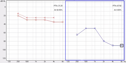 <span style="font-size:16px;"> 純音聽閾測試是聽力學(xué)所有測試項(xiàng)目中最基本的一項(xiàng)內(nèi)容,包括氣導(dǎo)(AC)、骨導(dǎo)(BC)、最舒適閾(MCL)與不舒適閾(UCL)測試。測試結(jié)果能夠直接反映患者雙耳的聽力損失程度、性質(zhì)與動態(tài)范圍,還能夠間接反映患者的患病位置、病因與助聽后效果。</span></p><p><span style="font-size:16px;"> 一般地,整個檢查控制在10分鐘左右,既能全面做完檢查,又不至患者疲憊而影響主觀反應(yīng)。</span></p><p><span style="font-size:16px;"> 純音聽閾測試是最考驗(yàn)聽力學(xué)工作者實(shí)際工作能力的一項(xiàng)基本內(nèi)容:</span></p><p><span style="font-size:16px;"> 1、若患者曾長期暴露于噪聲中,且無其它致聾因素,很可能在3 kHz或6 kHz出現(xiàn)明顯的下降,聽力曲線呈現(xiàn)“V”字形,所以除了常規(guī)的倍頻程頻率外,還要加測這兩個頻率,否則就犧牲了多通道助聽器的意義;</span></p><p><span style="font-size:16px;"> 除了有過噪聲接觸史的患者需要加測半倍頻程外,涉及聲場助聽聽閾評估、賠償?shù)惹闆r都需要加測半倍頻程。</span></p><p><span style="font-size:16px;"> 耳鳴困擾的患者,注意避免與耳鳴聲類似的純音,若還用純音作為刺激聲,患者就會分辨不清,出現(xiàn)假陽性或假陰性。所以,測試者要換成囀音,既有別于耳鳴聲,又具有頻率特異性。</span></p><p><span style="font-size:16px;"> 2、不舒適閾反映患者對大聲的忍耐力,不舒適閾與氣導(dǎo)的差值能顯示患者的動態(tài)范圍,指導(dǎo)驗(yàn)配師調(diào)節(jié)助聽器的最大輸出。</span></p><p><span style="font-size:16px;"> 不舒適閾測試頻率是否越多越好呢?非也。測得頻率過多,一會引起患者疲勞或不適,二是沒必要,大多數(shù)助聽器的最大輸出是一個整體,不能像調(diào)增益和壓縮那樣分通道,所以測多了并無好處,一般測0.5、1、2、4 kHz。</span></p><p><span style="font-size:16px;"> 3、如果兩側(cè)聽力有明顯差異,此時就要準(zhǔn)備好掩蔽了,分為氣導(dǎo)掩蔽與骨導(dǎo)掩蔽。</span></p><p><span style="font-size:16px;"> (1)氣導(dǎo)掩蔽的判斷有兩個原則,只要符合其中一個原則,就需要重新測差耳氣導(dǎo)。具體做法是:</span></p><p><span style="font-size:16px;"> 測試完雙耳氣導(dǎo),若發(fā)現(xiàn)某一頻率差耳氣導(dǎo)閾值比好耳氣導(dǎo)閾值多40 dB以上就要懷疑有可能是好耳偷聽的,需要給好耳氣導(dǎo)加掩蔽聲;</span></p><p><span style="font-size:16px;"> 測試完雙耳氣導(dǎo)與好耳骨導(dǎo),若發(fā)現(xiàn)某一頻率差耳氣導(dǎo)閾值比好耳骨導(dǎo)閾值多40 dB以上就要懷疑有可能是好耳偷聽的,需要給好耳氣導(dǎo)加掩蔽聲。</span></p><p><span style="font-size:16px;"> 下面為未掩蔽的聽力圖:</span></p><center><span style="font-size:16px;"><img alt="" src="/upfiles/201810160133207570.png" width="440" height="220" /></span></center><p></p><p><span style="font-size:16px;"> 下圖為掩蔽后的左耳真實(shí)氣導(dǎo)值:</span></p><center><span style="font-size:16px;"><img alt="" src="/upfiles/201810160133289538.png" width="440" height="220" /></span></center><p></p><p><span style="font-size:16px;"> (2)骨導(dǎo)掩蔽的判斷原則:</span></p><p><span style="font-size:16px;"> 測試完雙耳氣導(dǎo)與好耳骨導(dǎo),若發(fā)現(xiàn)某一頻率差耳氣導(dǎo)閾值比好耳骨導(dǎo)閾值大于等于15 dB就必須予以掩蔽,重測骨導(dǎo)。下圖為右耳氣導(dǎo)加掩蔽后左耳骨導(dǎo)的真實(shí)值:</span></p><center><span style="font-size:16px;"><img alt="" src="/upfiles/201810160133368026.png" width="440" height="220" /></span></center><p></p><p><span style="font-size:16px;"> 注意:</span></p><p><span style="font-size:16px;"> 1)掩蔽的規(guī)則要按順序適用;</span></p><p><span style="font-size:16px;"> 2)各頻率根據(jù)規(guī)則決定是否需要加掩蔽;</span></p><p><span style="font-size:16px;"> 3)很少需要掩蔽所有頻率,通常氣導(dǎo)掩蔽頻率不應(yīng)超三個,骨導(dǎo)掩蔽頻率不應(yīng)超兩個,否則受試者會疲憊不堪。</span></p><p><span style="font-size:16px;"> 醫(yī)院測聽的主要目的是診斷和鑒別聽力損失的性質(zhì)和程度,驗(yàn)配中心的主要目的是盡可能地幫助患者選擇并調(diào)試好助聽器。</span></p><p><span style="font-size:16px;"> 更多詳情請登錄m.sdhuijia.cn</span></p>" />