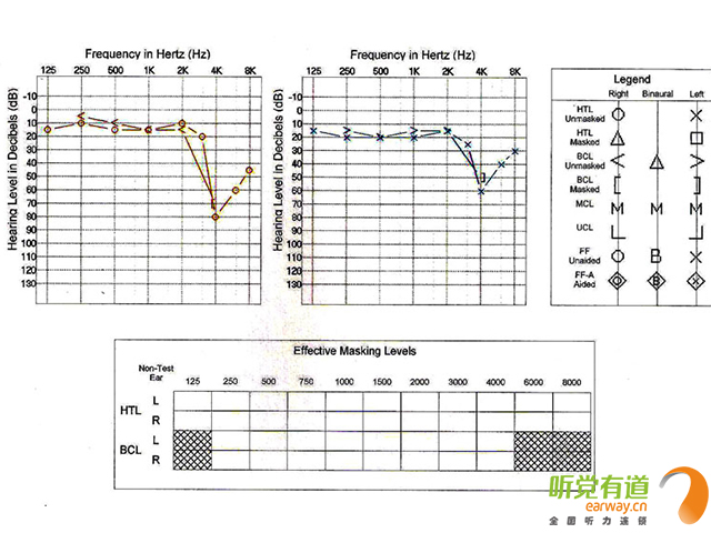 <span style="font-size:16px;"> 首先聽覺有道跟大家解釋一下純音測聽的定義以及臨床意義。純音測聽包括氣導聽閾測試(AC)和骨導聽閾測試(BC),以耳機及骨導振子給聲,反應受試者在安靜環境下能夠聽到的各個頻率的最小聲音的聽力級(氣導頻率范圍125-8000Hz,骨導250-4000Hz)。它是目前能準確反映聽敏度的主觀行為測試方法之一,在臨床上是最基本最重要的聽力檢查方法。</span></p><p><span style="font-size:16px;"><br /></span></p><p style="text-align: center;"><span style="font-size:16px;"><img src="/upfiles/201803010200415958.jpg" align="middle" alt="" /><br /></span></p><p style="text-align: center;"><span style="font-size:16px;"><br /></span></p><p><span style="font-size:16px;"> 先整體看一下聽力圖,它的橫坐標是純音的頻率,縱坐標表示的是聽力級(單位為db HL),從上往下看數字是變大的。0表示聽力零級,簡單地說就是科研人員測了很多聽力正常男女的聽力,以他們能聽到的最小聲音作為聽力零級。所以如果你的聽力是正常的話,聽力圖上的閾值曲線應該在零附近浮動,如果你聽力超常,那就在0以上也就是為負值了。如果你聽力下降,那線就往下走,越往下就說明聽力損失得越多。從生活常識上理解,所謂聽閾聽閾,閾值越低表示你能聽到越小的聲音,聽力就越好,閾值越高,聽力越差。</span></p><p><span style="font-size:16px;"> 接著說一下聽力圖上的圈圈叉叉代表的意思。叉叉表示左耳的氣導聽閾,圈圈表示右耳氣導,開口向左的尖括號表示左耳骨導,開口向右的表示右耳骨導。旁邊的masked表示加掩蔽之后的聽力。</span></p><p><span style="font-size:16px;"> 為什么要加掩蔽呢?舉個例子:你右耳聽力比左耳好,當你左耳給聲強度很大,會出現你左耳其實沒聽見但右耳偷聽到了的情況,這時你就會反應,但是這時你的反應能代表左耳的聽閾嗎?肯定比你實際聽閾要好,所以測聽人員會在你右耳加噪聲,不讓你右耳偷聽左耳的聲音,這樣測出來的左耳聽力稱掩蔽之后的聽閾。左耳掩蔽之后的氣導用小正方形來表示。同理,右耳掩蔽用小三角形表示。骨導也需要掩蔽。左耳掩蔽后骨導用向左的方括號表示,右耳用向右的方括號表示。</span></p><p><span style="font-size:16px;"> 最后我們該如何分析聽力圖。簡單地說,氣導的傳聲路徑包括外中內耳以及神經部分,骨導只包括內耳和神經部分,因此出現骨氣導差則表明聽覺通路上有外中耳病變??紤]到各種誤差因素,一般認為骨氣導相差10db HL屬于正常范圍。根據骨氣導的關系可以將聽力損失分為傳導性聽力損失、感音神經性聽力損失以及混合性聽力損失。骨氣導差大于10,且骨導在正常范圍為傳導性聽損;骨氣導一致且都在正常范圍以外為感音神經性聽損;骨氣導差大于10,骨導在正常范圍之外為混合性聽損。</span></p><p><span style="font-size:16px;"> 當然,如果想進一步定位聽力診斷結果,還需要結合其他的一些測試如聲導抗、ABR、耳蝸電圖、耳聲發射、40Hz、影像學檢查等。</span></p><p><span style="font-size:16px;"> 更多詳情請登錄m.sdhuijia.cn。</span></p>" />