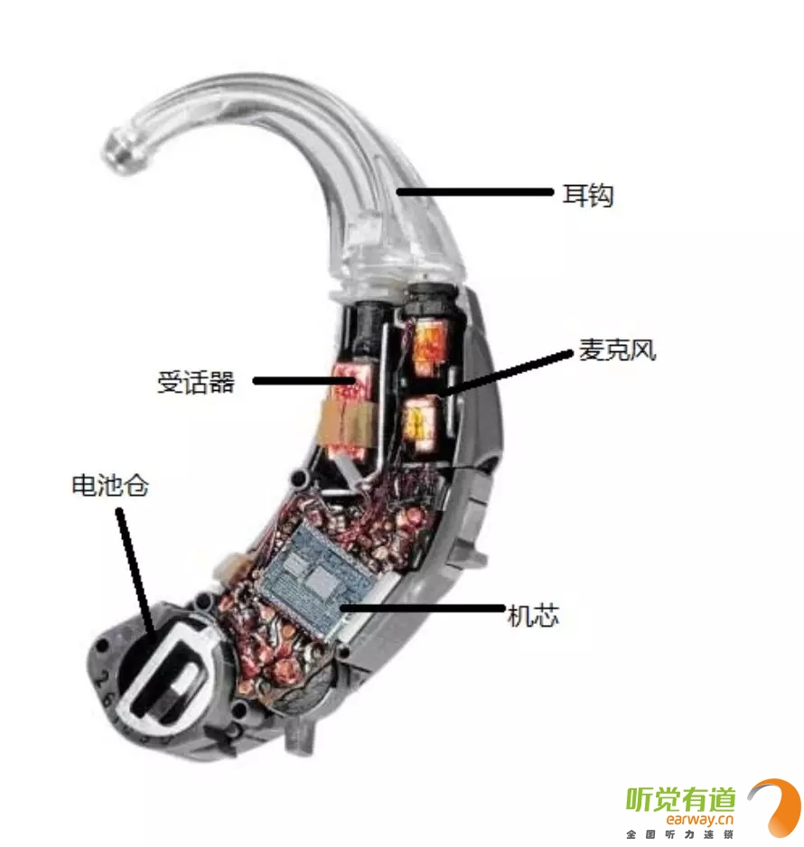 <span style="font-size:16px;"> 在助聽器發展過程中,出現過很多種助聽器,比如:盒式、眼鏡式、耳背式、耳甲腔式、耳道式、深耳道式等定制式助聽器。如今盒式助聽器、眼鏡式助聽器等幾乎已退出歷史舞臺,現在常見的助聽器有耳背式助聽器、定制式助聽器和RIE受話器外置式助聽器。</span></p><p style="text-align: center;"><span style="font-size:16px;"><img src="/upfiles/201808160127045435.jpg" width="640" alt="" /><br /></span></p><p><span style="font-size:16px;"> 接下來,我們將以耳背式助聽器為例,向您介紹助聽器的外部配件及內部構造!</span></p><p><span style="font-size:16px;"> 1、機身內部構造</span></p><p style="text-align: center;"><span style="font-size:16px;"><img src="/upfiles/201808160127276133.jpg" width="640" alt="" /><br /></span></p><p><span style="font-size:16px;"> 麥克風:獲取聲音并將聲音信號轉化為電信號。</span></p><p><span style="font-size:16px;"> 機芯:將電信號進行放大、處理,機芯包含放大器、音量調控電位器、微調電位器等。</span></p><p><span style="font-size:16px;"> 受話器:將電信號轉化為聲音信號,通過導聲管和耳模傳送給耳朵。耳背式助聽器和定制式助聽器的受話器都在機身內;RIE受話器外置式助聽器的受話器放置在耳道中。</span></p><p><span style="font-size:16px;"> 電池倉:用于安放電池來供電,使助聽器正常工作。</span></p><p><span style="font-size:16px;"> 2、電池</span></p><p><span style="font-size:16px;"> 電池放置于電池倉內,給予助聽器能量。市面上常見的助聽器電池分為4類:</span></p><p><span style="font-size:16px;"> A675:一般用于超大功率耳背式助聽器。</span></p><p><span style="font-size:16px;"> A13:一般用于標準耳背式或耳甲腔式助聽器。</span></p><p><span style="font-size:16px;"> A312:一般用于耳道式助聽器。</span></p><p><span style="font-size:16px;"> A10:一般用于深耳道式助聽器。</span></p><p><span style="font-size:16px;"> 電池大小:A675>A13>A312>A10,電池越大,儲存能量越多。</span></p><p><span style="font-size:16px;"></span></p><p> 更多詳情請登錄m.sdhuijia.cn。</p>" />