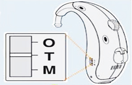 1)直接在助聽器機身上選擇:適用于一些安裝了“O、T、M”的助聽器;