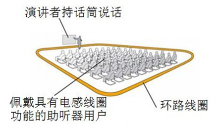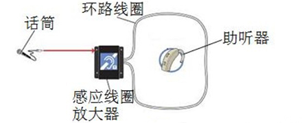 感應線圈系統(induction loop system)可將音頻信號轉換為電流,進而產生磁場以供助聽器中的電感線圈識別。