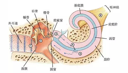 人體各器官功能取決于其生理結構,高頻陡降性聽力損失最為常見主要與耳部各個解剖部位有關。</p><p> 1、外耳的漏斗狀結構和彎曲“S”型耳道,此結構使得外界的聲學物理發(fā)生了變化。</p><p> </p><center><img alt="" src="/upfiles/201904030222181282.png" width="440" height="250" /></center><p></p><p> 如上圖所示,人類耳廓及耳道對不同頻率段的聲音增益變化可以看出:在頻率2kHz-4kHz范圍耳道對聲音增益最大。研究表明噪聲引起的聽力損失常常位于噪聲頻率之上的一倍頻率程處,工業(yè)噪聲位于低中頻范圍內相對恒定,外耳道自然共振峰為2kHz-4kHz,故最容易導致4kHz-6kHz頻率范圍內聽力損失。這也就是為什么噪聲性聽障起初聽力損失常常從4KHz左右開始,逐漸損害影響至更好頻率。</p><p> 2、耳蝸螺旋狀結構</p><p> </p><center><img alt="" src="/upfiles/201904030222256648.png" width="440" height="250" /></center><p></p><p> 聲音從外耳道經聽骨鏈傳至內耳前庭窗,懸浮在耳蝸內的基底膜剪切運動引起其上的毛細胞電位變化,傳至大腦皮層感受聲音。</p><p> 耳蝸結構類似蝸牛呈螺旋結構,約2.5圈-2.75圈。聲波在基底膜上的傳播方式,是按物理學中的行波原理進行的,亦即行波學說(travellingwavetheory)。基底膜的最大振幅部位與聲波的頻率有關,亦即每一種頻率的聲波在基底膜上不同位置有一相應的最大振幅部位:高頻聲引起的最大振幅部位在蝸底靠近前庭窗處,低頻最大振幅靠近蝸頂,中頻在中間部分發(fā)生共振。由此可知,聲音從高頻到低頻的傳播途徑均需底周基底膜的振動,即高頻段的基底膜相對容易疲勞。同時耳蝸底周基底膜毛細胞含有比頂端毛細胞更低的抗氧化酶,故氨基糖苷類抗生素(慶大霉素、卡那霉素、鏈霉素等)耳毒性藥物出現(xiàn)的聽力損失都為陡降型聽力曲線。</p><p> 3、聽神經音頻分布</p><p> </p><center><img alt="" src="/upfiles/201904030222303234.png" width="440" height="250" /></center><p></p><p> 聽神經分布與耳蝸基底膜螺旋結構一脈相承,感受低頻的神經位于中心,感受高頻的聽神經位于外周。外傷、缺血缺氧、皰疹病毒等理化環(huán)境的變化首先影響到高頻。</p><p> 更多詳情請登錄聽覺有道助聽器m.sdhuijia.cn</p>" />