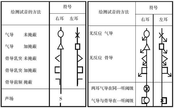 橫坐標代表頻率,以倍頻程為單位分隔——請記住倍頻程的概念,它指兩個頻率間的間隔,高頻是相鄰低頻的兩倍;縱坐標代表強度。右耳氣導用紅色“○”標記,左耳用藍色“×” 標記,閾值就是頻率與強度的交叉點位置。比如某人左耳在250Hz處的聽閾是30dBHL,則在250Hz這一軸線上30dB HL中點劃一藍叉。30dB HL是聽閾,正常人的聽閾是-10dB HL~25dB HL,也就是說,這個人的聽力損失(也可稱做聽敏度的下降)只有5dB HL。</p><p> </p><center><img alt="" src="/upfiles/201906100159589704.png" width="600" height="373" /></center><p></p><p style="text-align: center;">國家統(tǒng)一聽力標記符號</p><p> 用聽力圖表示聽閾級時,應采用上表所給符號,對氣導相鄰點用直線連接,骨導用虛線連接。如在聽力計最大輸出級仍無反應,可在相應符號處垂直向下畫一箭頭,或在符號的下外角與垂直方向約成45o角向下畫一箭頭(即左耳符號箭頭向右,右耳符號箭頭向左)。無反應的符號應記在聽力圖上代表聽力計最大輸出的聽力級處。如用彩色筆記錄,右耳符號和連線為紅色,左耳符號與連線為藍色。從篩選測聽法得出的結果應清楚地照此表示出來。</p><p> 更多詳情請登錄聽覺有道助聽器m.sdhuijia.cn</p>" />