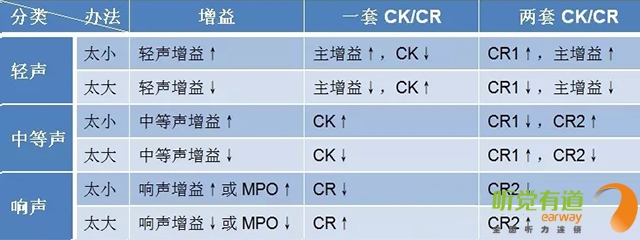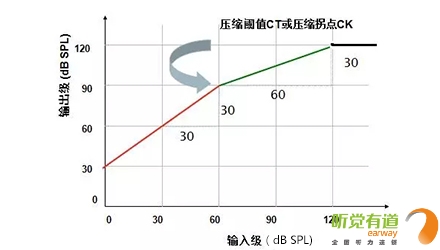 顧名思義,壓縮就是把超過一定強度的聲音減小至聽損患者縮小的殘余聽覺動態范圍里。相較于線性放大,壓縮可以有效達到“小聲聽得見,大聲受得了”的要求,尤其適用于感音神經性患者。</p><p> 壓縮參數主要有三個:壓縮拐點/壓縮閾值(CK/CT)、壓縮比(CR)與壓縮時間(起效時間AT,釋放時間RT)。下圖:橫坐標代表輸入級,即未經助聽器放大的聲音;縱坐標代表輸出級,即放大后的聲音。輸入與輸出的關系:輸出級=輸入級+增益,亦可表示:放大后的聲音=放大前的聲音+放大量。有了這個基礎,我們就可以清楚地理解這兩個參數的含義并進行調節。</p><p> 1、壓縮拐點(CK):線性放大與壓縮放大的臨界輸入級,此處為60 dB SPL,即輸入聲強度在60 dB SPL以下時為線性放大,超過60 dB SPL為壓縮放大。①紅線的輸入級范圍為0~60 dB,這段的聲音為線性放大,隨意找一個輸入級,用它對應的輸出級減去輸入級,得出線性放大的增益為30 dB;②當輸入級大于60 dB時,綠色曲線為壓縮放大,輸出與對應輸入的差值不再是30 dB,而是隨著輸入級增加,增益逐漸減小;③當輸出達到最大輸出限制時,輸出不再增大,保持在最大輸出限制位置。</p><p> </p><center><img alt="" src="/upfiles/201906120320158907.png" width="440" height="250" /></center><p></p><p> 2、壓縮比(CR):輸入級差值與輸出級差值的比值。上圖中線性狀態時壓縮比為1:1,可以找兩對數值,(輸入60-輸入0)/(輸出90-輸出30)=60/60=1:1。壓縮狀態時壓縮比為2:1,同樣可以找兩對數值,(輸入120-輸入60)/(輸出120-輸出90)=60/30=2:1。</p><p> 3、壓縮方式(CM):由于起效時間(AT)與釋放時間(RT)的不同組合構成不同的壓縮方式。</p><p> 助聽器由線性變換到壓縮時所需的穩定時間為起效時間。起效時間短,說明對大聲壓縮及時,不會造成聽力傷害;起效時間長,說明對大聲壓縮緩慢,有可能短暫感覺刺耳,但可以最大程度還原小聲與大聲的強度差異感。</p><p> 助聽器由壓縮回到線性時所需的穩定時間為釋放時間。釋放時間短,說明對小聲及時線性放大,避免小聲聽不見;釋放時間長,說明對小聲還在壓縮,放大不及時,有可能小聲聽不見,但可以最大程度還原大聲和小聲的強度差異感。</p><p> 我們可以做個比喻來了解壓縮的概念。假使你在高速路上,突然前方出現一個大大的警示牌,提示有事故發生,這時你需要迅速踩剎車以防撞擊。越早踩剎車相當于越早壓縮(壓縮拐點越小),剎車的力度越大相當于壓縮比越大,開始剎車至時速降至安全時速所需時間相當于起效時間,過了事故點踩油門,車速恢復至高速所需時間相當于釋放時間。</p><p> 壓縮是為了保護人們聽覺系統免受瞬間或持續中、大強度聲音的刺激,同時又能有效放大各種小聲的基本技術手段,可以使小聲、中等聲和大聲無一遺漏地進入聽障患者縮小的聽覺動態范圍中。</p><p> 恰當的壓縮拐點與壓縮比滿足了聽障患者達到“小聲聽得見、大聲受得了”的要求,而壓縮的起效時間與釋放時間設定需要考慮聽障患者個性化的聆聽喜好。</p><p> 起效時間與釋放時間都短,優點是小聲放大及時、大聲壓縮及時,即小聲聽得到大聲不覺吵,缺點是大小聲強度差異感不大;起效時間短釋放時間長,優點是大小聲強度差異感真實,音節間噪聲小,缺點是有可能小聲放大不足。</p><p> 事實上,各企業的助聽器軟件往往可以直接調節輕聲增益、中等聲增益、大聲增益與主增益而間接控制壓縮參數,有的軟件可見一套CK/CR,有的軟件可見兩套CK/CR。有些軟件會自動默認為自適應壓縮方式,能夠根據聲音強度差異自動調整。</p><p> 下圖匯總了對不同強度聲音不適的解決辦法,供大家參考。</p><p> </p><p><center><img alt="" src="/upfiles/201906120320202761.png" width="640" height="240" /></center><center><p style="text-align: left;"> 更多詳情請登錄聽覺有道助聽器m.sdhuijia.cn</p><br /></center></p>" />